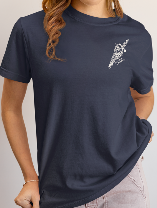 Cold Steel Cream (Small front) + MA Logo | (Single Color) Fantasy Ice Cream Graphic Tee – 100% Cotton Unisex Shirt